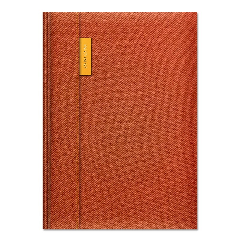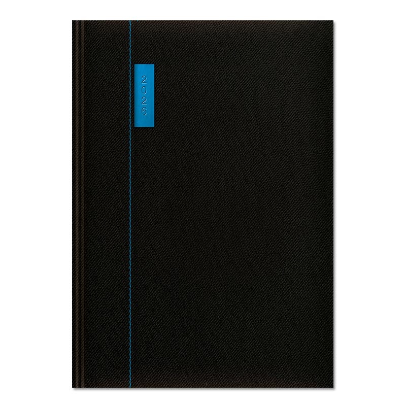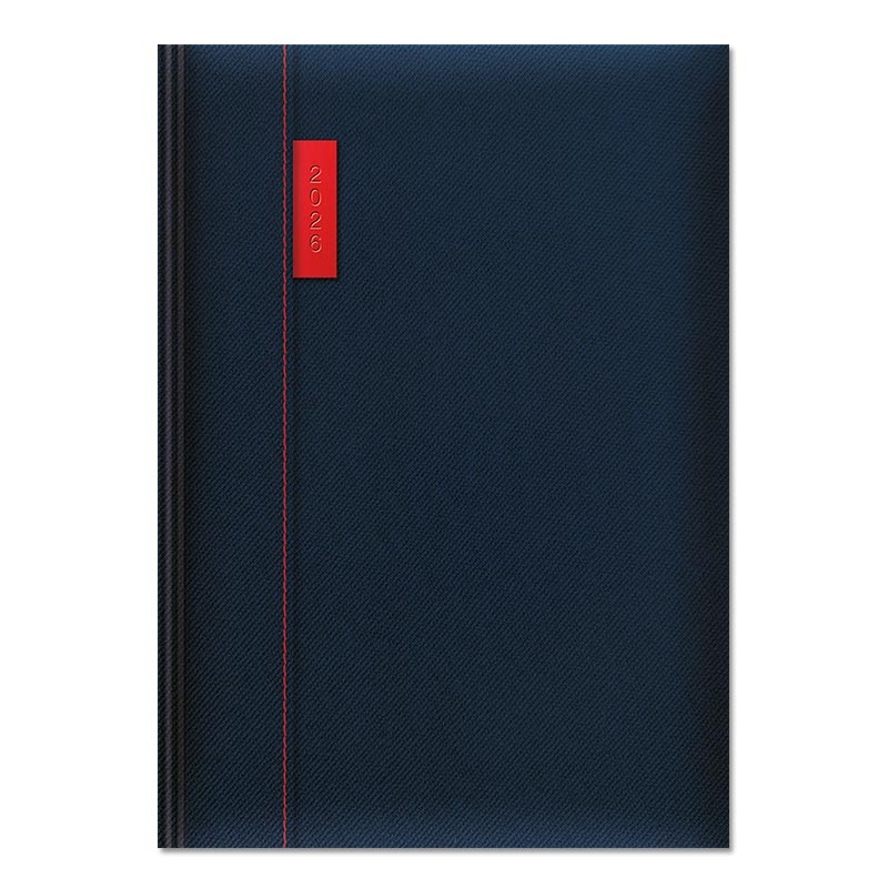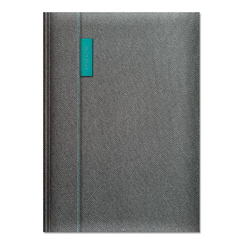 Oprawa twarda zmiękczona gąbką, materiałowa DENIM, z charakterystyczną wszywką. Rok tłoczony na gorąco z przebarwieniem, możliwość personalizacji oraz głębokiego tłoczenia logo firmy.