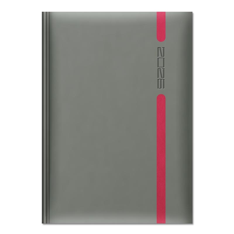 Oprawa twarda zmiękczona gąbką. Połączenie oprawy VELVET z materiałem VIVELLA. Rok tłoczony na gorąco, możliwość personalizacji oraz głębokiego tłoczenia logo firmy.