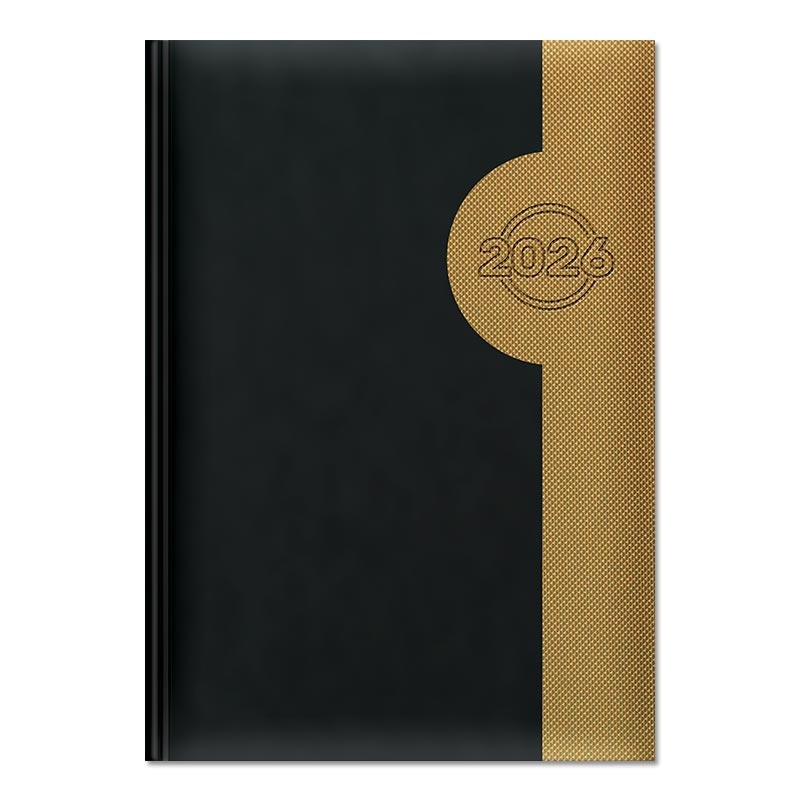 Oprawa twarda zmiękczona gąbką. Połączenie oprawy VELVET z oprawą NADIR. Rok tłoczony na gorąco z przebarwieniem, możliwość personalizacji oraz głębokiego tłoczenia logo firmy.