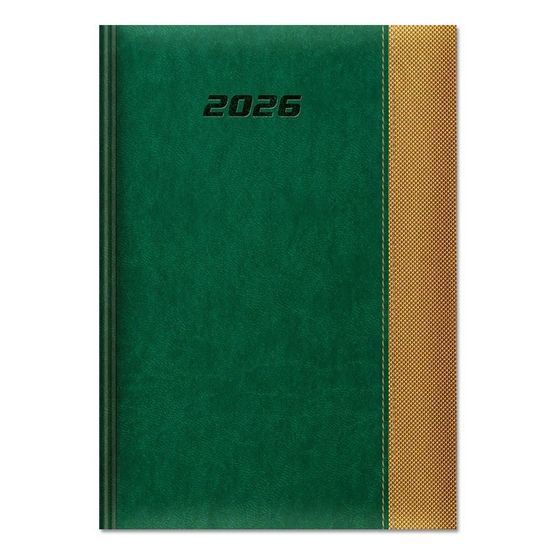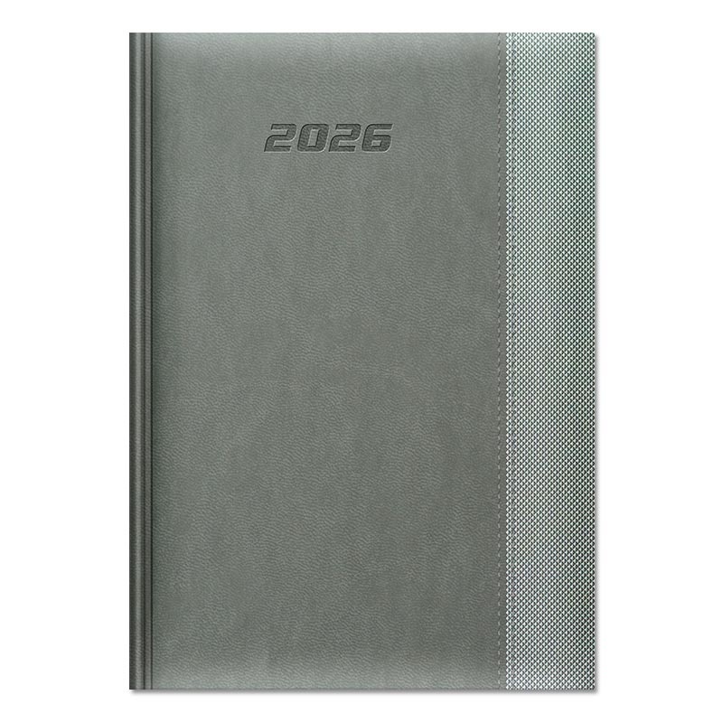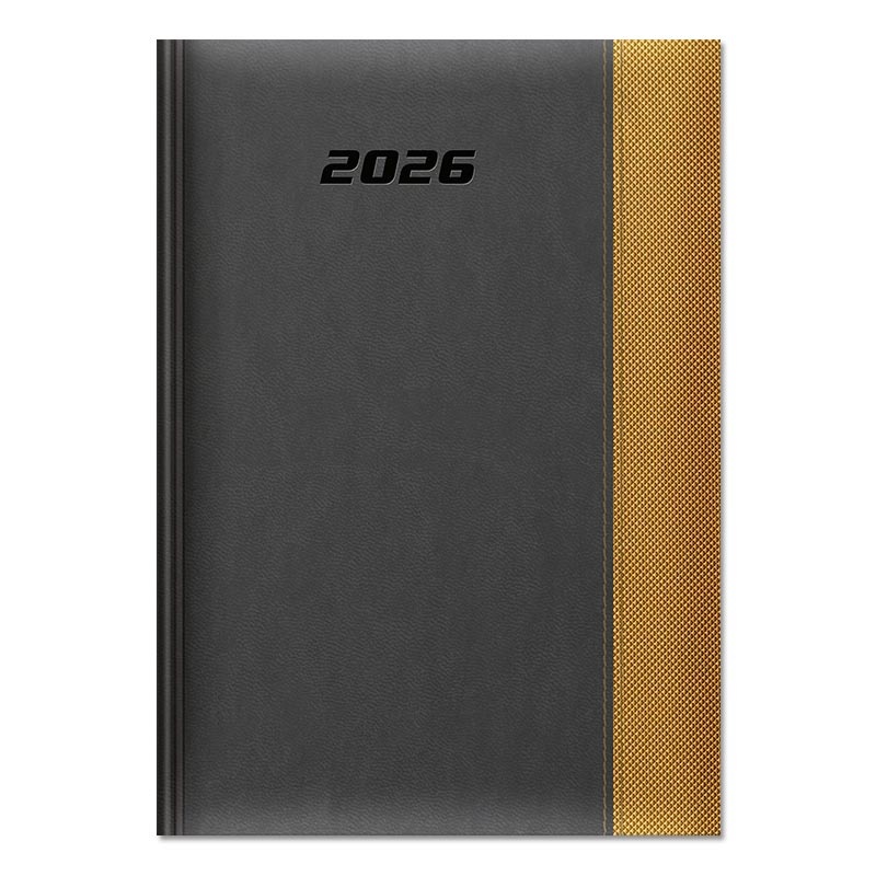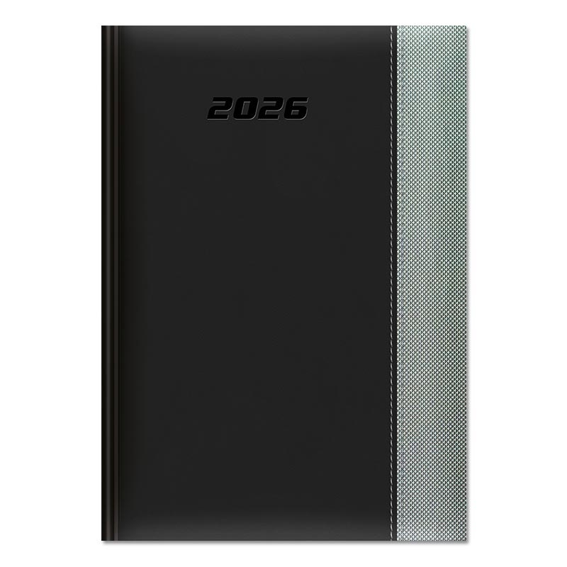 Oprawa twarda zmiękczona gąbką, z przeszyciem po prawej stronie. Połączenie oprawy SIMPLE z oprawą metalizowaną NADIR. Rok tłoczony na gorąco z przebarwieniem, możliwość personalizacji oraz głębokiego tłoczenia logo firmy.