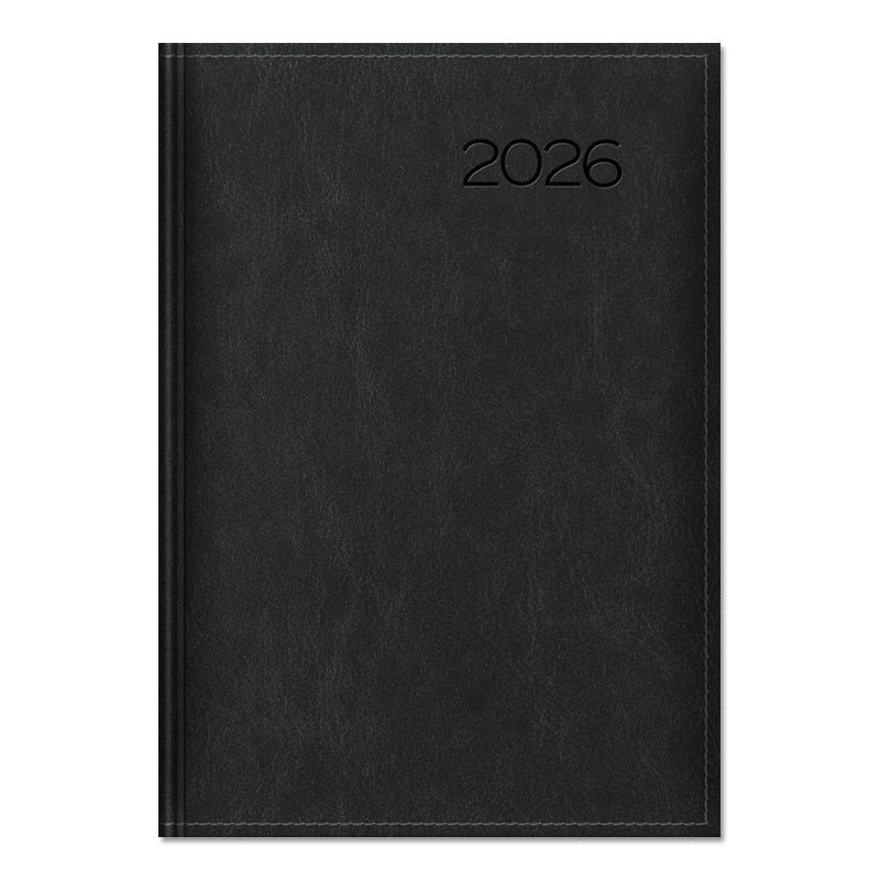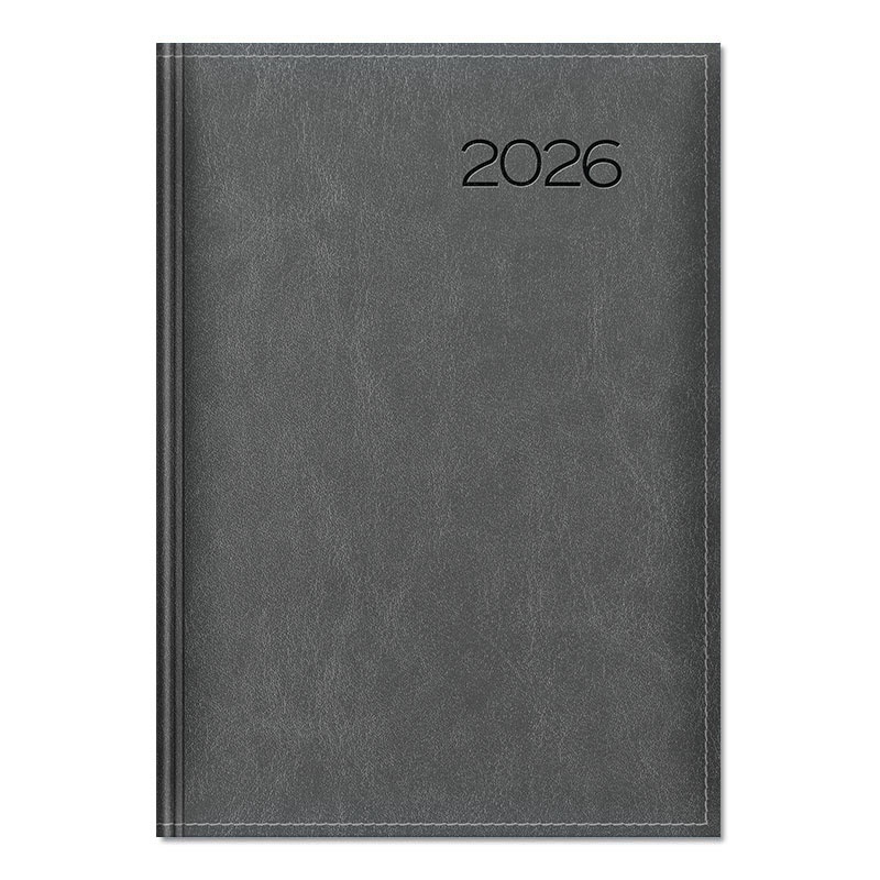 Oprawa twarda zmiękczona gąbką, skóropodobna THERMO z obszyciem. Szara oprawa metalizowana. Rok tłoczony na gorąco z przebarwieniem, możliwość personalizacji oraz głębokiego tłoczenia logo firmy.