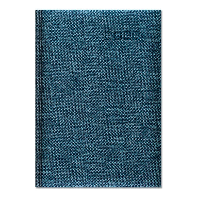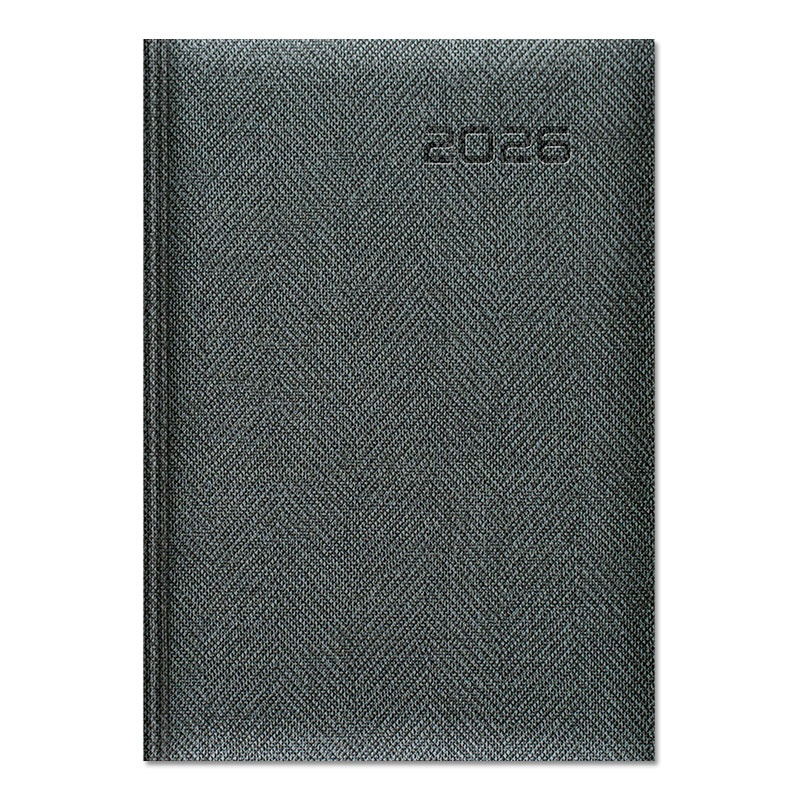 Oprawa twarda zmiękczona gąbką, materiałowa TWEED, imitująca płótno. Rok tłoczony na gorąco z przebarwieniem, możliwość personalizacji oraz głębokiego tłoczenia logo firmy.