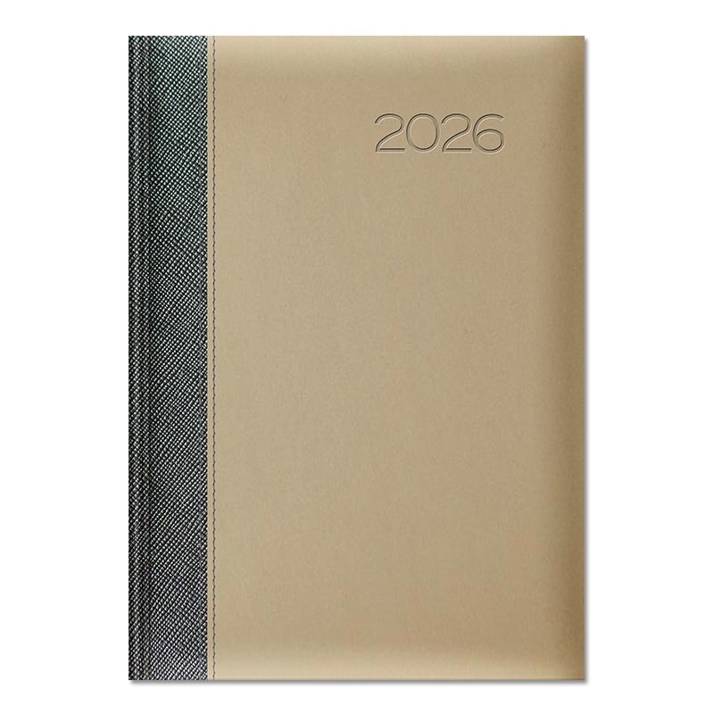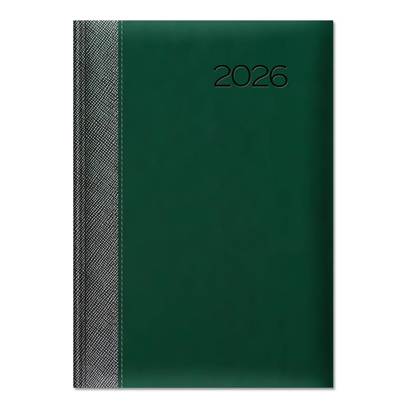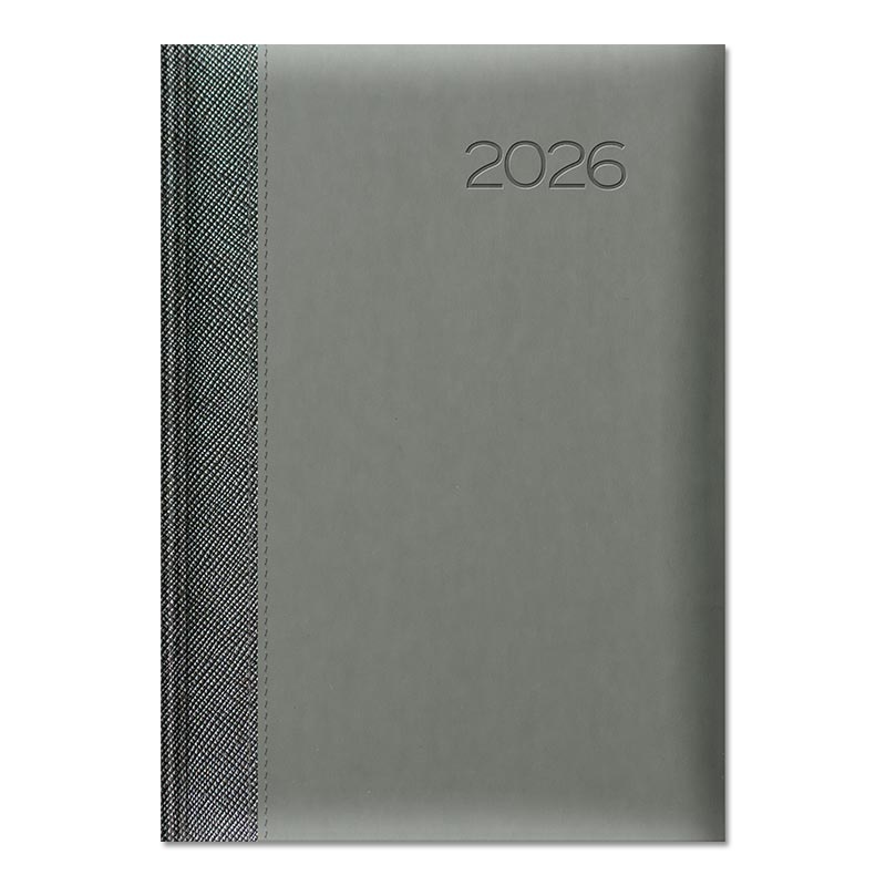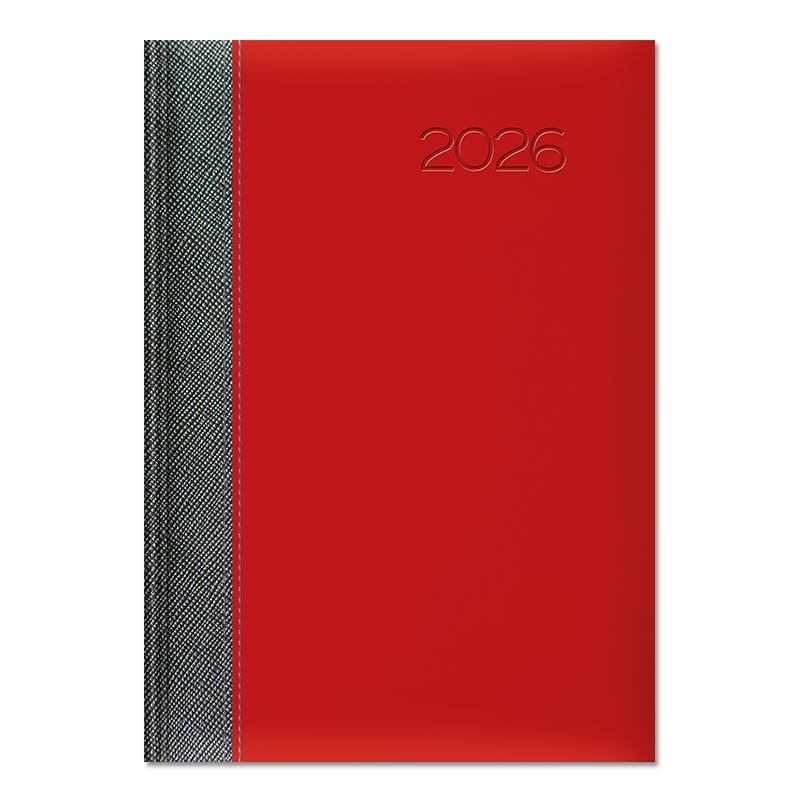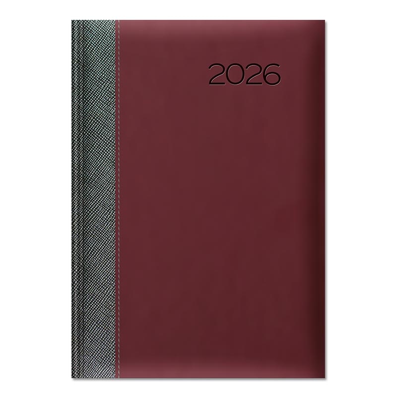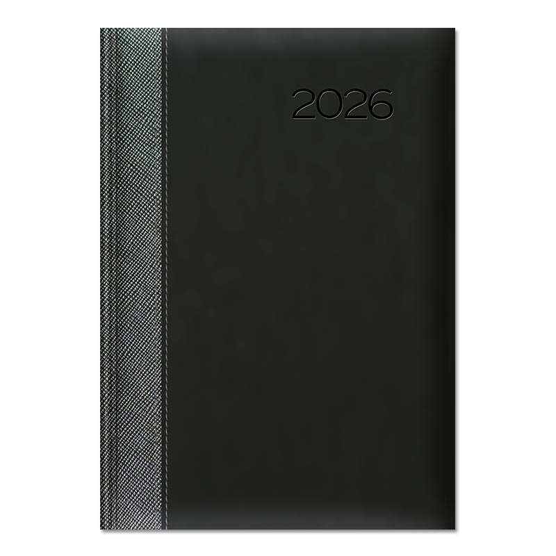 Oprawa twarda zmiękczona gąbką, z przeszyciem. Połączenie na grzbiecie oprawy METALIC z oprawą matową VELVET. Rok tłoczony na gorąco z przebarwieniem, możliwość personalizacji oraz głębokiego tłoczenia logo firmy.